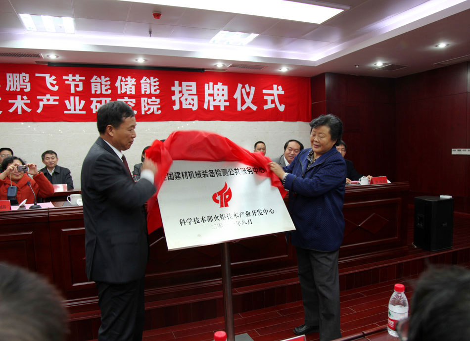 2014年11月29日上午10時,江蘇鵬飛節能儲能新技術產業研究院正式揭牌成立。縣政協主席朱春、中國建材機械工業協會常務副會長王玉敏、江蘇省建材行業協會會長聶長蘭,中科院、南京工業大學、上海交大、安徽理工、鹽城工專等高校院所的專家教授,縣科技局、人社局等相關部門負責人及部分客商,150多名代表參加了揭牌儀式。副縣長盧忠平主持了揭牌儀式。
