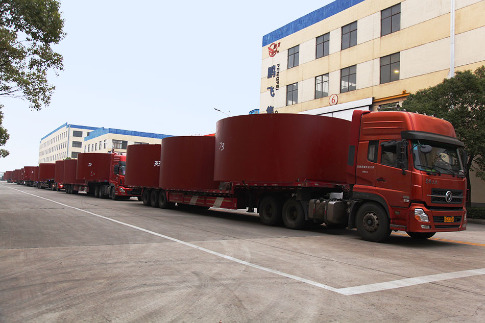 11月21日江蘇鵬飛集團股份有限公司內一片忙碌,工人師傅們為出口AJ5臺Φ5.4×52米回轉窯發貨做著準備。公司經過數月的加班加點終于保質按期完成5臺Φ5.4×52米回轉窯制造。