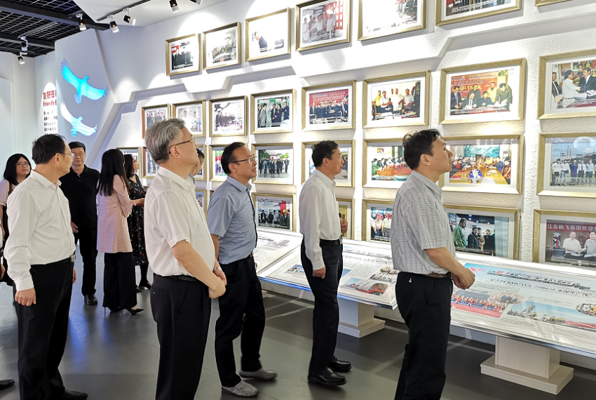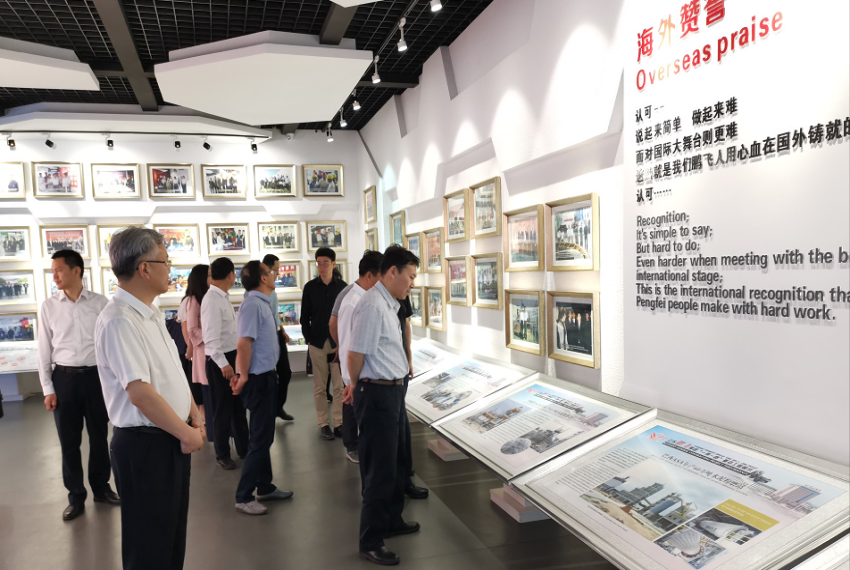 江蘇鵬飛集團股份有限公司董事長王家安帶領調研組一行,參觀了生產車間和展廳,向調研組介紹企業國內外發展定位及在“一帶一路”沿線國家落地項目的概況,向調研組介紹企業現階段發展狀況、海外項目運行情況及企業未來發展愿景。