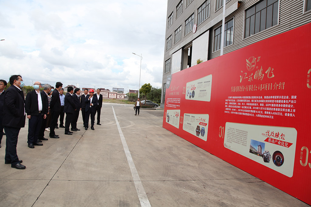 鵬飛集團黨委書記、董事長王家安陪同參觀并介紹了公司的項目實施情況。公司是國家重點高新技術企業、制造業單項冠軍示范企業、國家知識產權示范企業、江蘇省隱形冠軍企業。