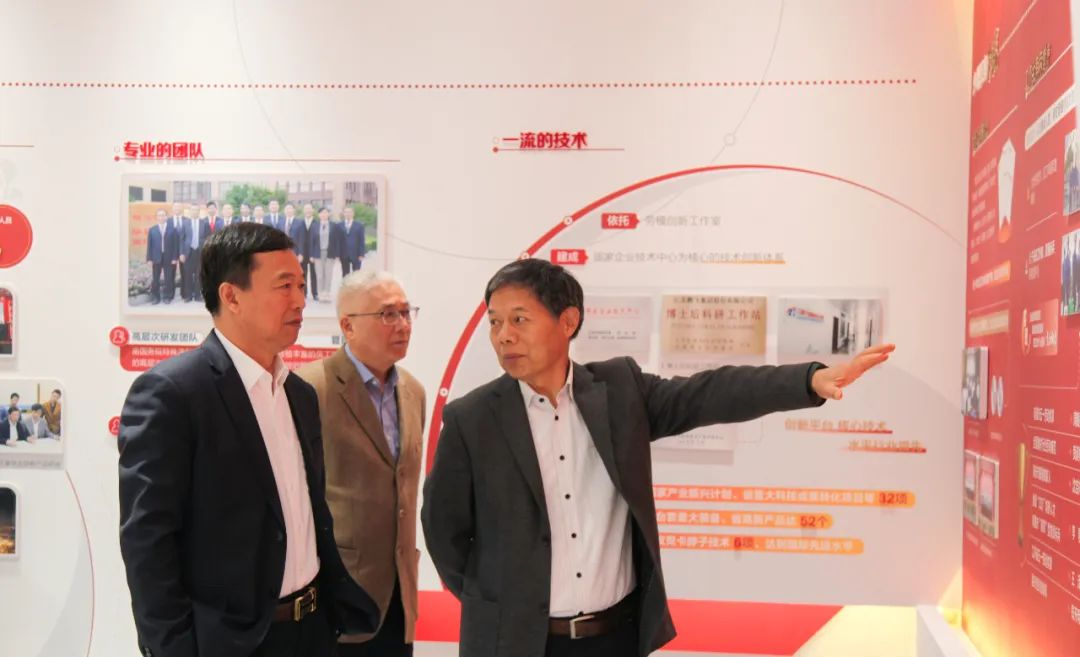 近日,江蘇省進出口商會會長笪家祥來鵬飛集團調(diào)研考察,海安市商務局黨組成員、副局長周先宇,公司董事長王家安、副總經(jīng)理賁道林陪同參觀了鵬飛展示中心、黨建館。王家安詳細介紹了鵬飛的發(fā)展歷程、工業(yè)技術(shù)、創(chuàng)新成果及未來規(guī)劃,笪會長也對鵬飛集團的經(jīng)營模式、科技創(chuàng)新、節(jié)能環(huán)保、綠色發(fā)展、信息化建設等情況進行了解。