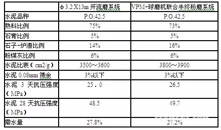 關(guān)于水泥質(zhì)量,我們與該廠老生產(chǎn)線(φ3.2 X13m開流磨系統(tǒng))所生產(chǎn)的水泥進(jìn)行對(duì)比,結(jié)果如下: