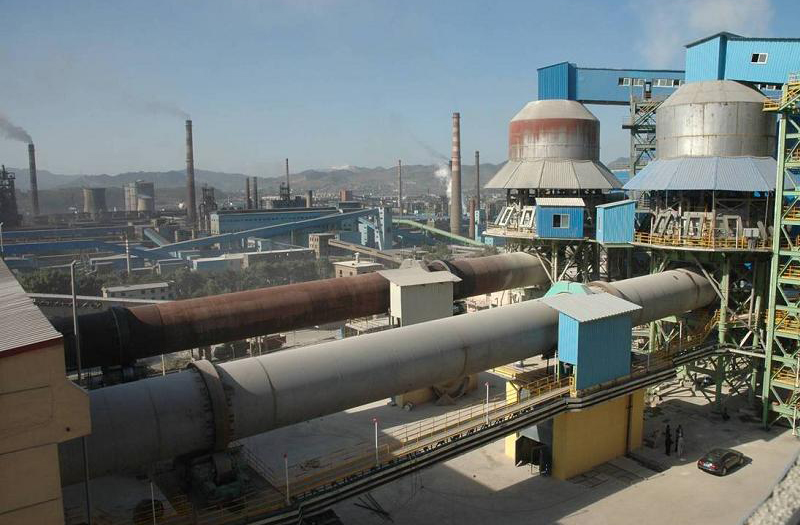 (2)回轉(zhuǎn)窯:回轉(zhuǎn)窯由筒體、支撐裝置、變速傳動裝置、擋輪裝置、窯尾及窯頭密封、窯頭罩組成。窯體與水平呈3.5%傾斜放置。配有兩套支撐裝置,其托輪軸承為水冷式油勺潤滑滑動軸承,并有球面瓦能自動調(diào)心。在靠近大齒圈處還配有液壓擋輪。采用變頻調(diào)速電機(jī)驅(qū)動窯體,并設(shè)有附助傳動驅(qū)動窯體。窯頭窯尾采用彈簧片式密封裝置。采用變頻調(diào)速電機(jī)驅(qū)動窯體結(jié)合預(yù)熱器分解率,有效控制煅燒時間及溫度,達(dá)到生燒和過燒指標(biāo)要求。